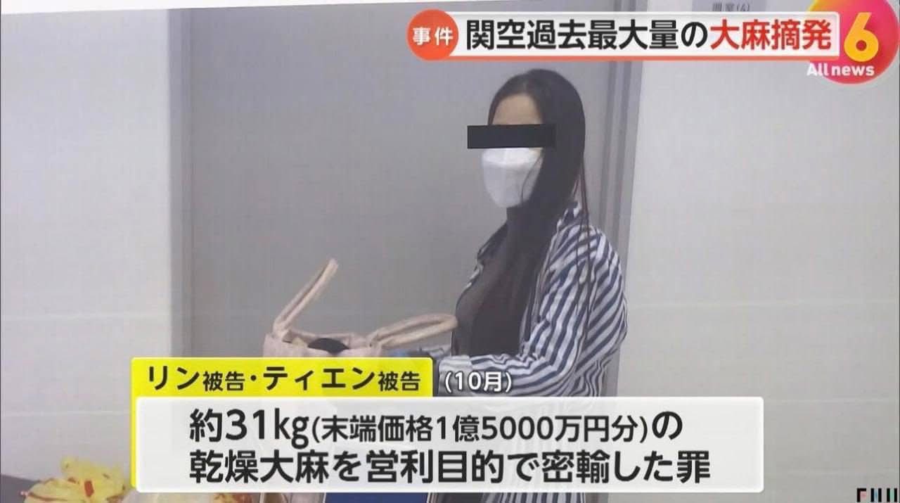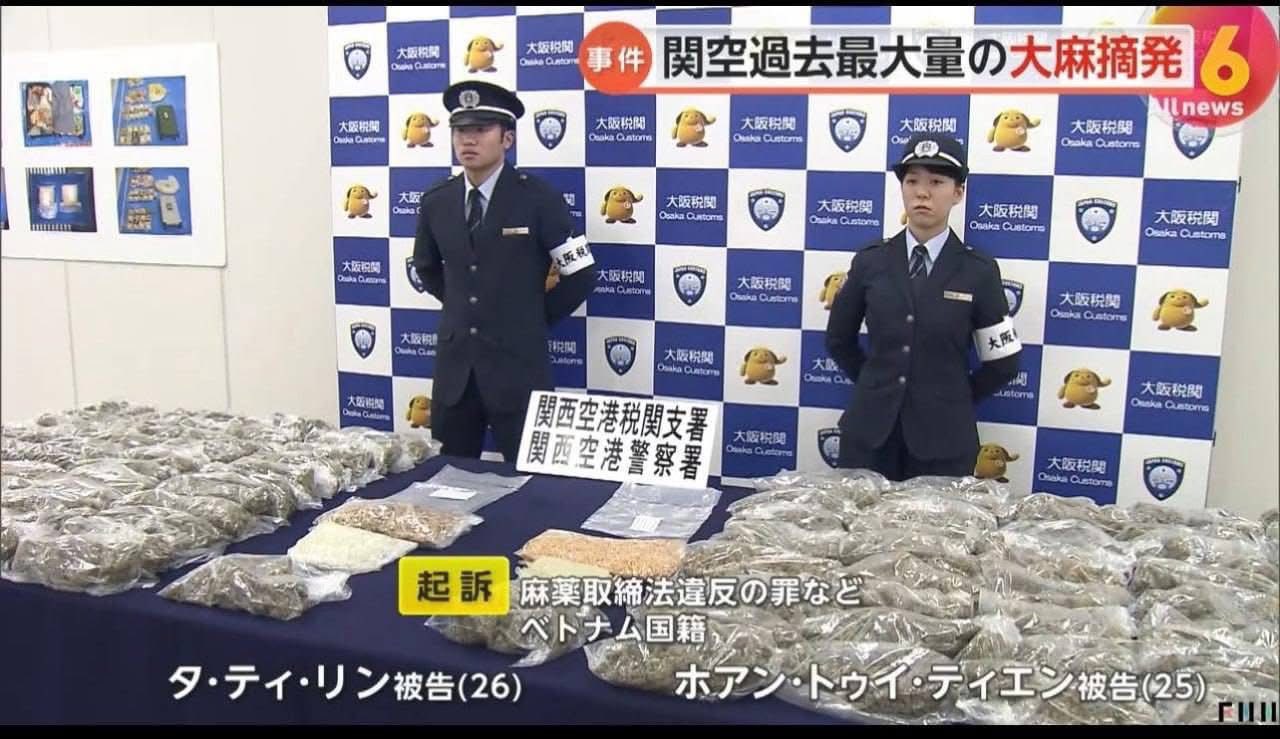 Theo cơ quan điều tra, bị can Ta Thi Linh, 26 tuổi, và Hoang Thuy Tien, 25 tuổi, bị buộc tội vi phạm Luật kiểm soát ma túy sau khi mang khoảng 31kg cần sa khô từ Thái Lan vào Nhật Bản vào tháng 10 năm 2025. Số hàng được giấu trong vali, có tổng giá trị ước tính lên tới khoảng 150 triệu yên (khoảng 25.000 tỷ đồng). Đây là vụ thu giữ cần sa lớn nhất từng được ghi nhận tại sân bay Kansai.