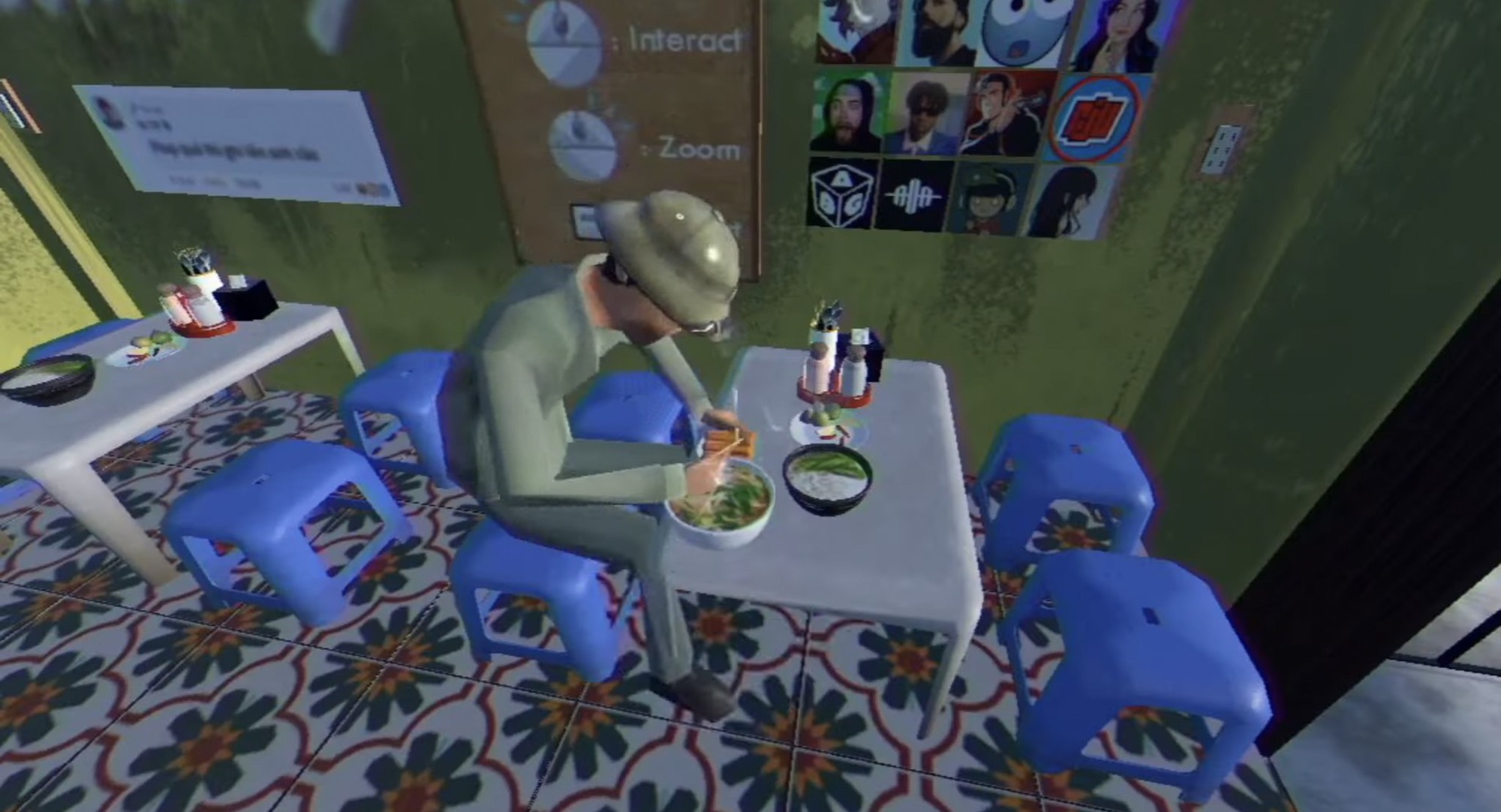 Tiếp đến là phần bối cảnh cụ thể khi khách hàng đến dùng món ăn, một vài chi tiết trên tường khiến người chơi không thể bất ngờ, ngỡ ngàng hơn. Qúa là bắt trend rồi: