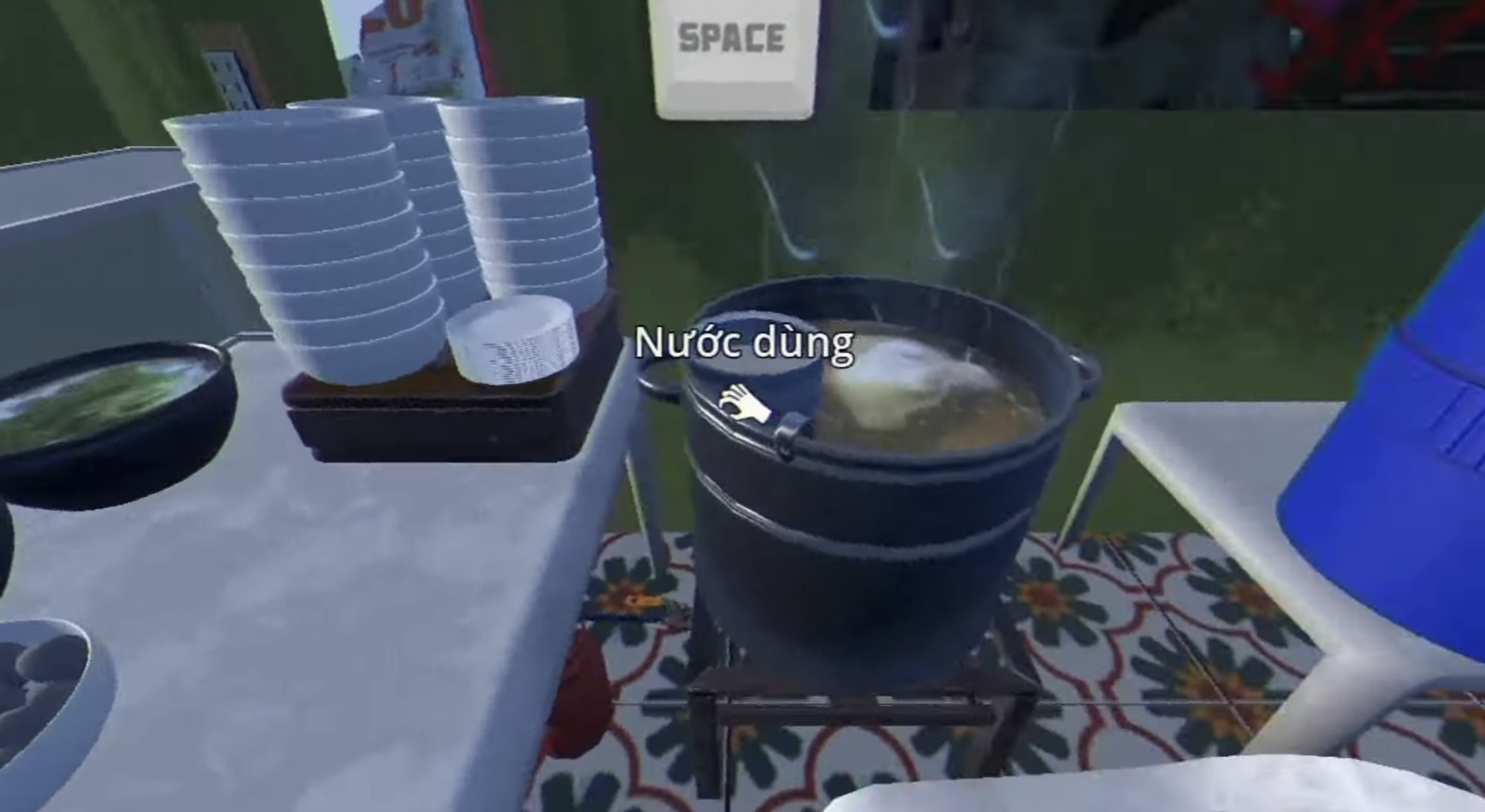 Tiếp theo sẽ là cận cảnh quầy phở - nơi các người chơi sẽ trực tiếp hóa thân làm chủ tiệm, tự tay nấu, phục vụ các khách hàng.