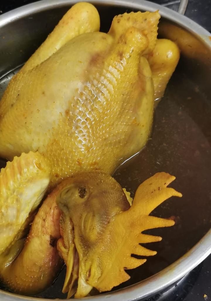 Gà cúng mùng 1 tháng Chạp đẹp cần luộc đúng kỹ thuật để da vàng bóng, không nứt, thịt chín đều, thơm ngon. (Ảnh: Yêu Bếp)