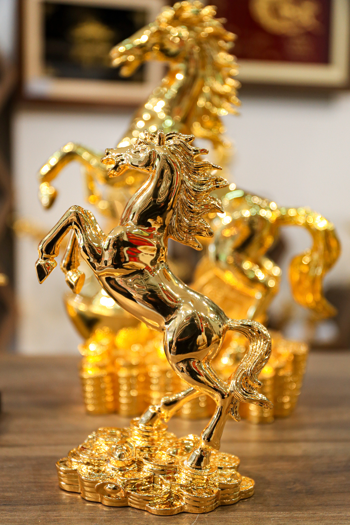 Tượng ngựa vàng thịnh vượng cao 12 cm có giá 4 triệu đồng, còn phiên bản cao 32 cm được chào bán với mức giá 25 triệu đồng.