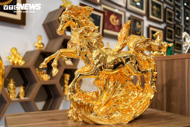 Dịp Tết năm nay, cửa hàng của anh Huy còn ra mắt sản phẩm “Song mã phi thiên”, tượng ngựa đúc đồng mạ vàng cao 44 cm, với mức giá 80 triệu đồng.