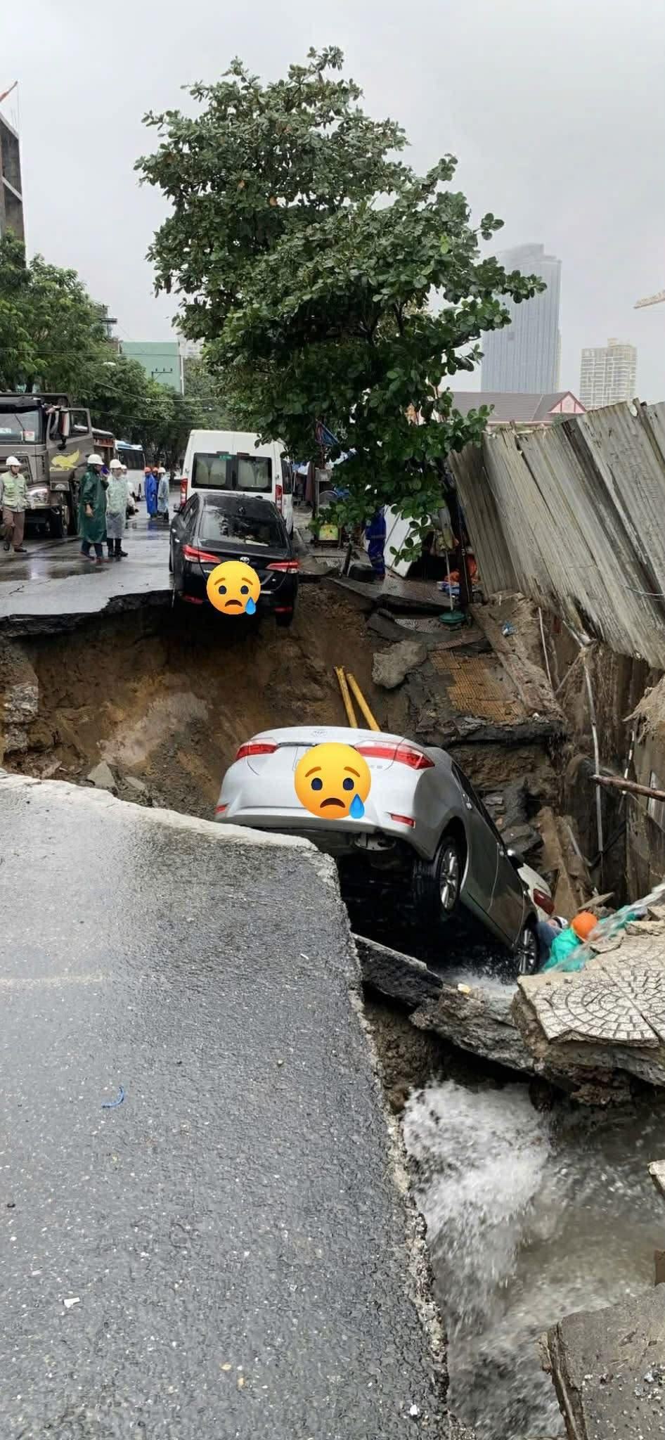 Tại hiện trường, 2 xe ô tô nằm chỏng chơ dưới hố, một ô tô khác sụp hai bánh sau, nằm vắt vẻo trên miệng hố. Đến 15h cùng ngày, lực lượng chức năng vẫn đang khẩn trương phong tỏa hiện trường vụ sập hố tử thần tại trung tâm Đà Nẵng.