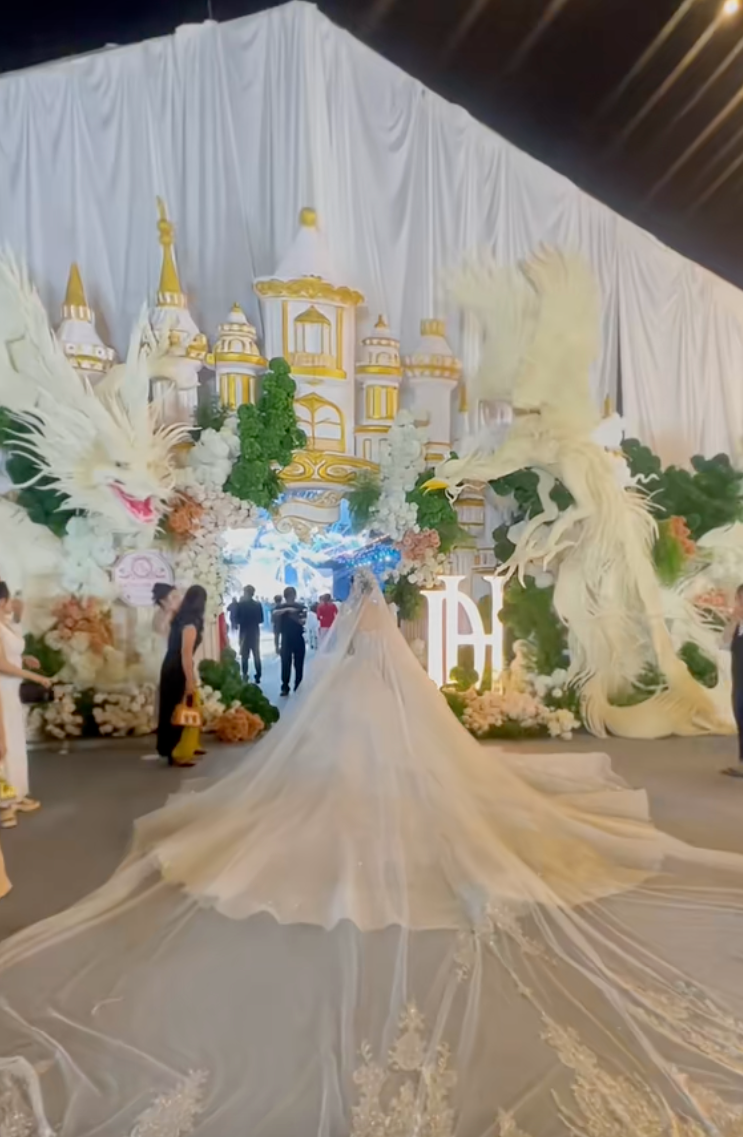 Qua những hình ảnh được chia sẻ, dinh thự nhà gái nhanh chóng trở thành tâm điểm chú ý. Căn nhà bề thế, rộng lớn, thiết kế sang trọng và tọa lạc tại vị trí đắc địa của Tây Ninh. Đặc biệt, chi tiết khiến cộng đồng mạng không khỏi xúc động chính là việc bố mẹ cô dâu đặt tên dinh thự theo tên con gái, như một cách thể hiện tình yêu thương, sự trân trọng và niềm tự hào dành cho ái nữ của mình. Chỉ riêng điều này cũng đủ cho thấy cô dâu được nâng niu và yêu chiều đến mức nào.