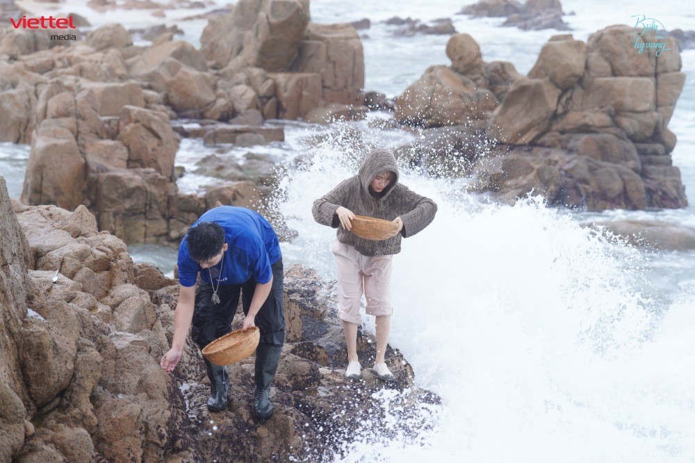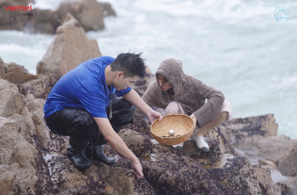 Không chỉ là câu chuyện sinh kế của dân đảo, sức hút của rong mứt còn lan tỏa đến cả những người nổi tiếng. Trong chương trình "Biển của Hy vọng", khán giả từng chứng kiến cảnh ca sĩ Hòa Minzy và Quân A.P "chật vật" đi hái mứt biển tại cù lao Mái Nhà. Giữa những mỏm đá nhấp nhô, những con sóng cao quá đầu đánh liên tục khiến cả hai ướt sũng từ đầu đến chân, nhưng sự hào hứng khi chạm tay vào thứ "lộc trời" này là có thật.