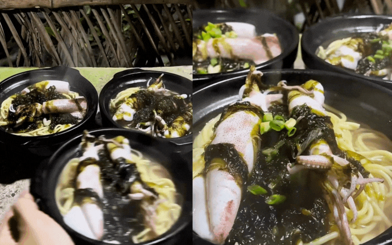 Như cách Chuyện Thi ở đảo "thi triển" món mì rong mứt mực tươi: Vị nước dùng thanh thanh, mặn mặn, ngọt hài hòa từ biển cả. Sợi rong mứt khi nấu chín có độ giòn nhẹ, mùi thơm đặc trưng không lẫn vào đâu được, kết hợp cùng mực tươi giòn sần sật tạo nên một tổng thể "vạn người mê".