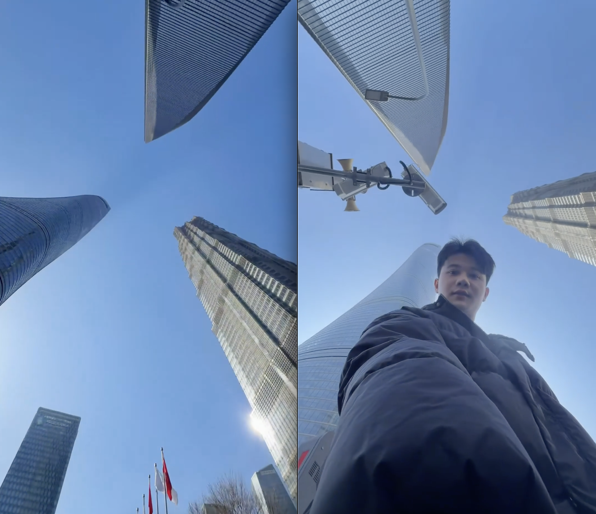 Việc sử dụng góc máy từ dưới lên không chỉ làm nổi bật chiều cao đồ sộ của các tòa nhà mà còn tăng cường hiệu ứng thị giác thông qua sự tương phản giữa con người và kiến trúc. Chính vì vậy, nơi đây đã trở thành điểm check-in quen thuộc, thường xuyên xuất hiện trong các bộ ảnh du lịch và video ghi lại khoảnh khắc đáng nhớ tại Thượng Hải.