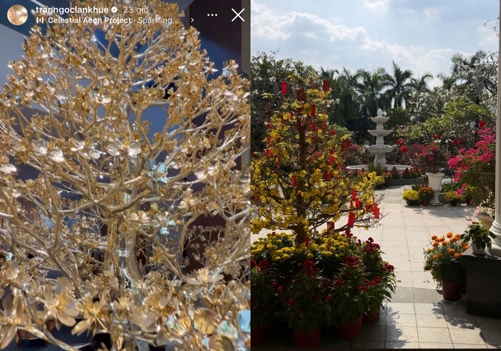 Lan Khuê cũng khiến mạng xã hội xôn xao khi chia sẻ hình ảnh căn nhà được trang hoàng lộng lẫy. Từ phòng khách đến khu vực sân vườn đều tràn ngập hoa tươi với đủ sắc vàng, đỏ đặc trưng của Tết. Là nàng dâu của gia đình doanh nhân, Lan Khuê vẫn giữ phong cách sang trọng quen thuộc. Không gian sống rộng rãi, nội thất tinh tế kết hợp cùng hoa tươi được sắp đặt khéo léo tạo nên tổng thể vừa ấm cúng vừa hiện đại.