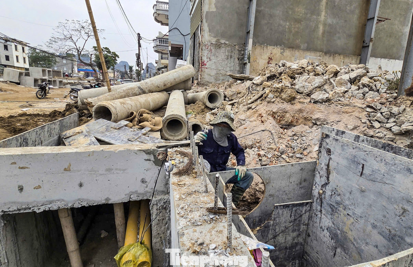 Tại một số vị trí đã giải phóng mặt bằng xong, công nhân đang khẩn trương hoàn thiện hạng mục cống thoát nước, bóc phong hóa nền đường.