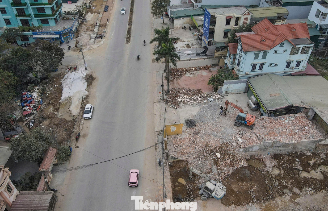 Dọc đại lộ có nhiều căn biệt thự với diện tích hàng nghìn m2 và một số ngôi nhà 2 tầng không thuộc diện tháo dỡ, chỉ cắt bỏ một phần sân vườn. Nhiều căn được bọc kín bằng vải bạt để giảm bụi do quá trình thi công.