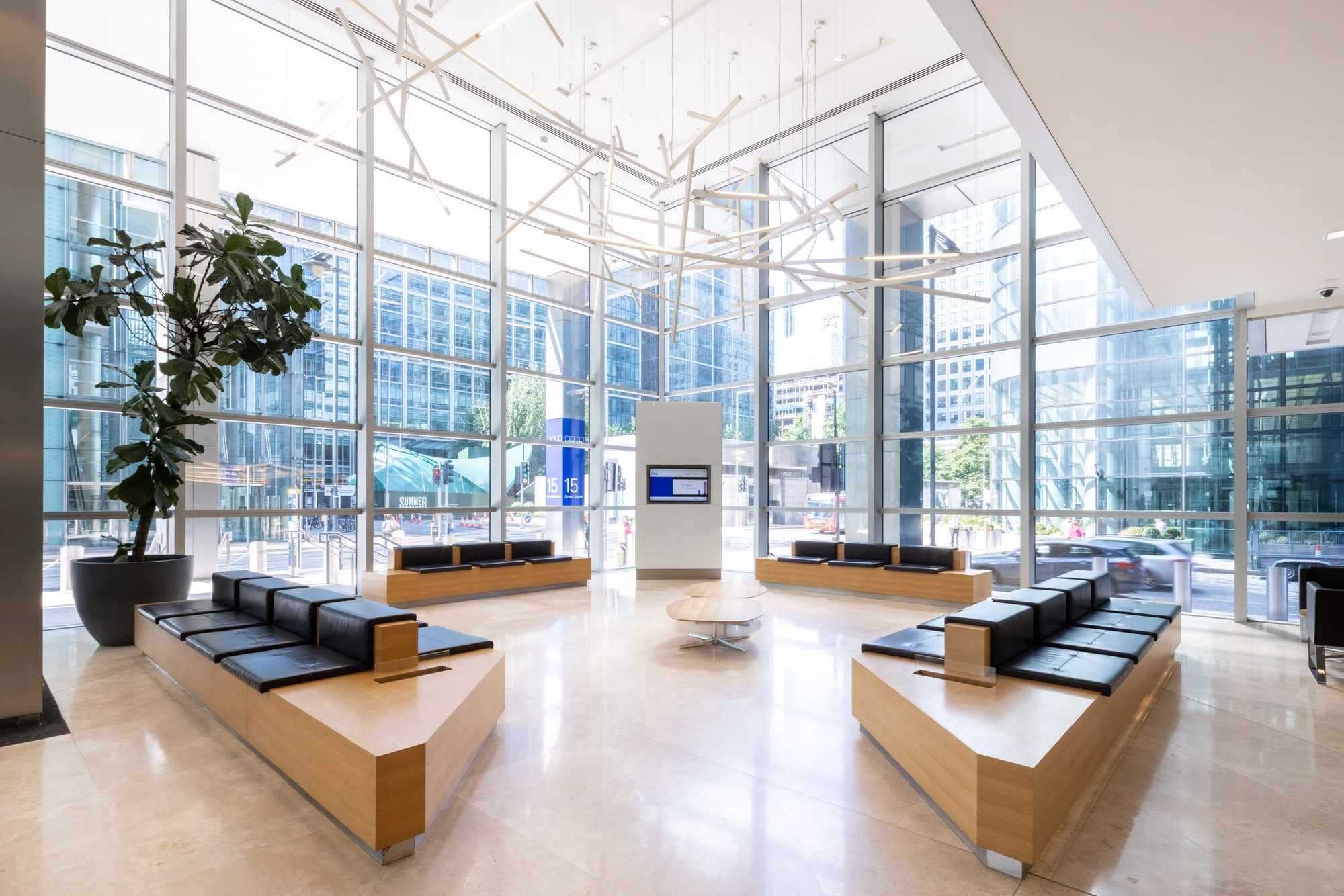 Với vị trí nằm ngay quảng trường Canada Square, tòa nhà có tầm nhìn bao quát sông Thames và đường chân trời London. Hệ thống kính lớn bao quanh giúp tận dụng tối đa ánh sáng tự nhiên, trong khi nội thất theo phong cách tối giản với tông xanh, trắng đặc trưng của thương hiệu. Các khu vực tiếp khách và phòng họp cao cấp thường nằm ở những tầng cao, phục vụ các tập đoàn đa quốc gia và định chế tài chính lớn - nhóm khách hàng cốt lõi của BIG4.