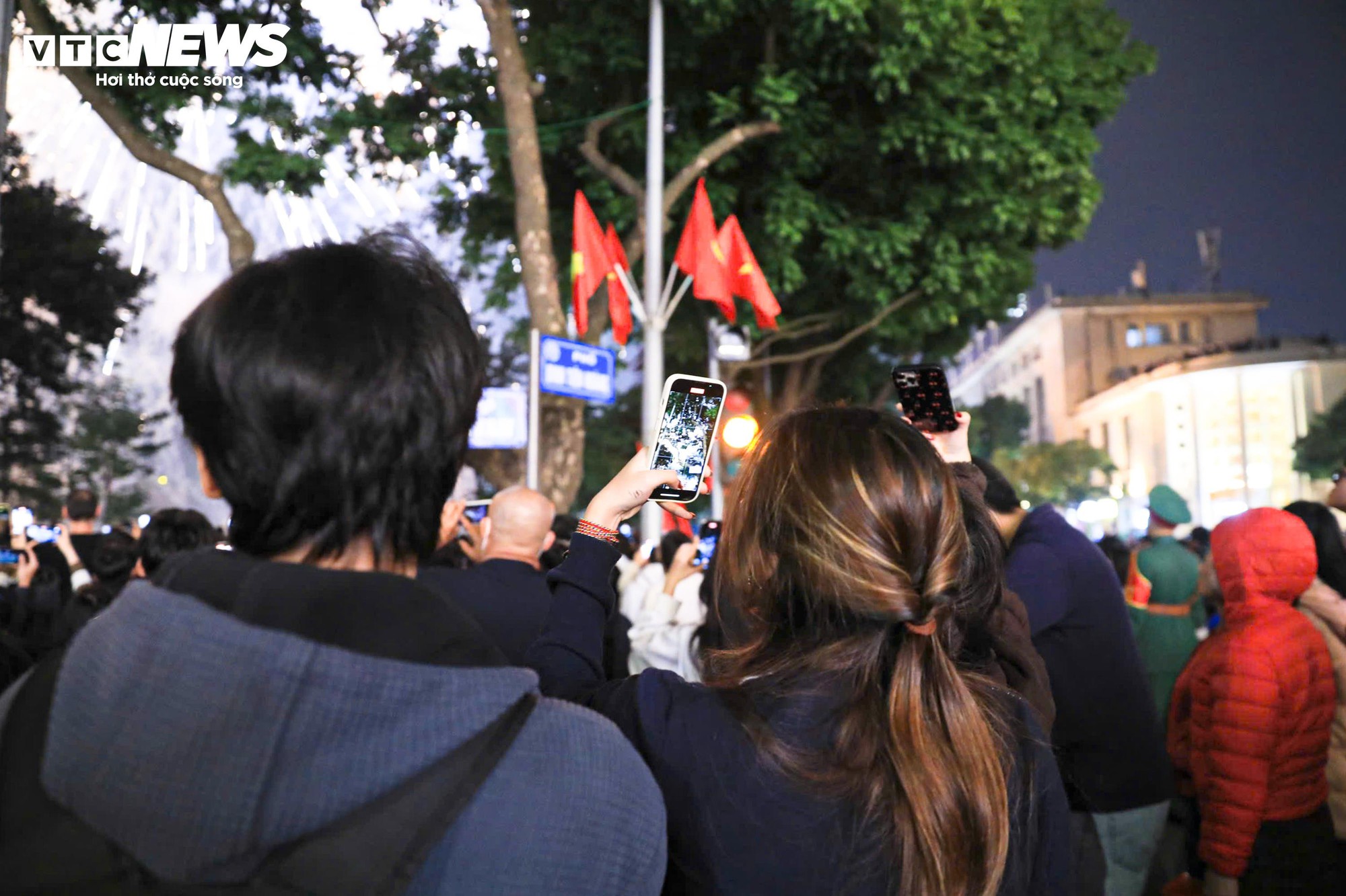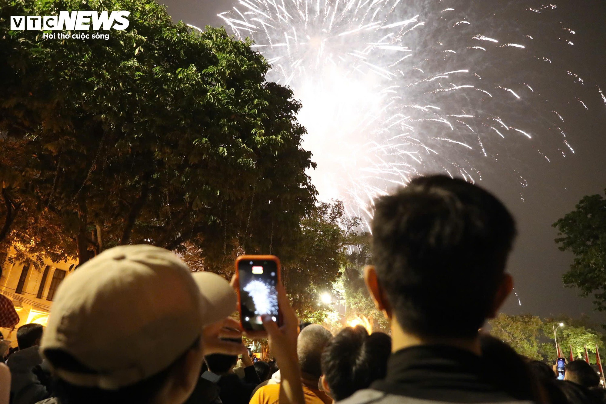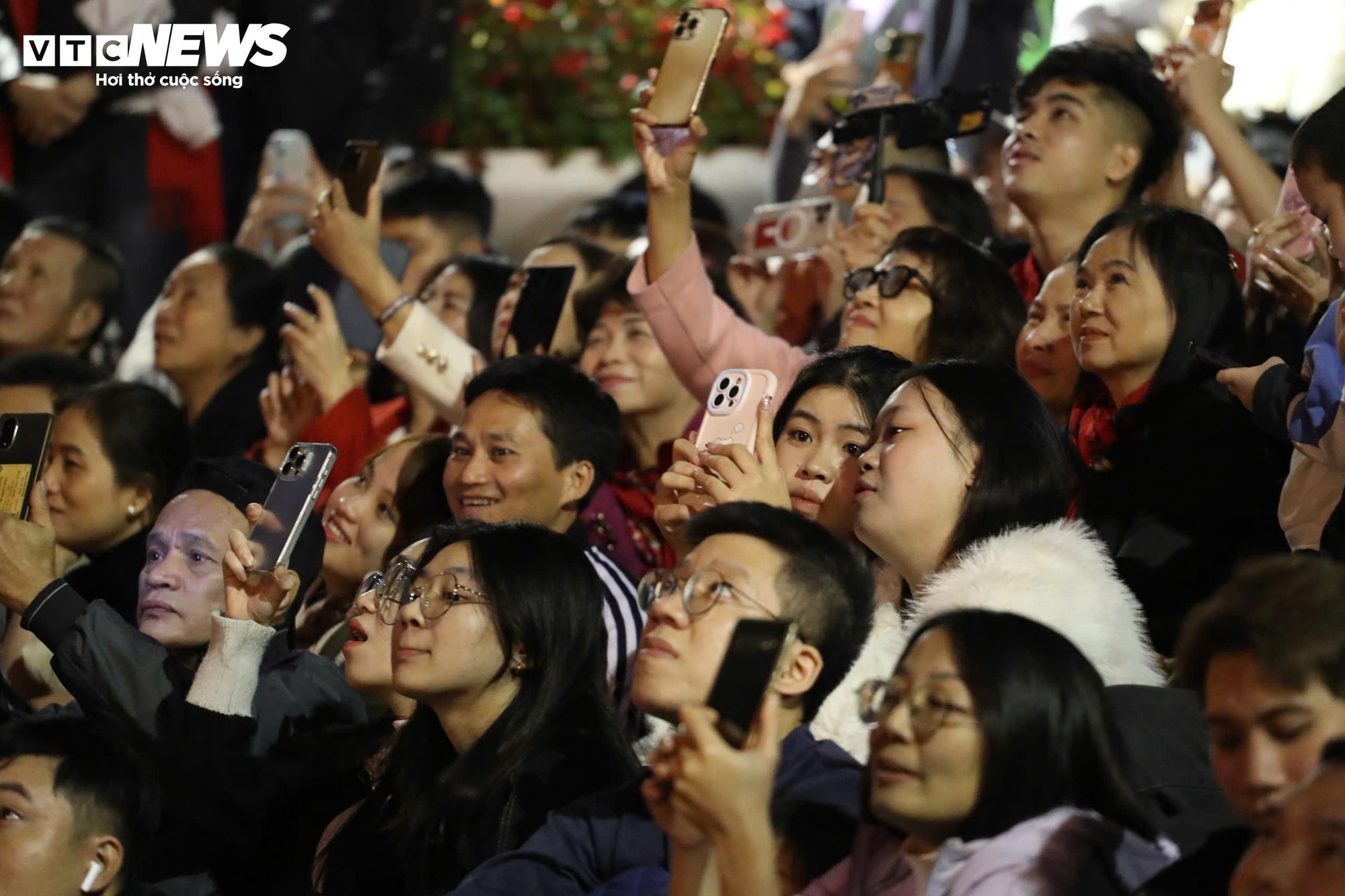 Nhiều người dân chăm chú theo dõi, không giấu được sự phấn khởi khi khoảnh khắc giao thừa chính thức diễn ra.