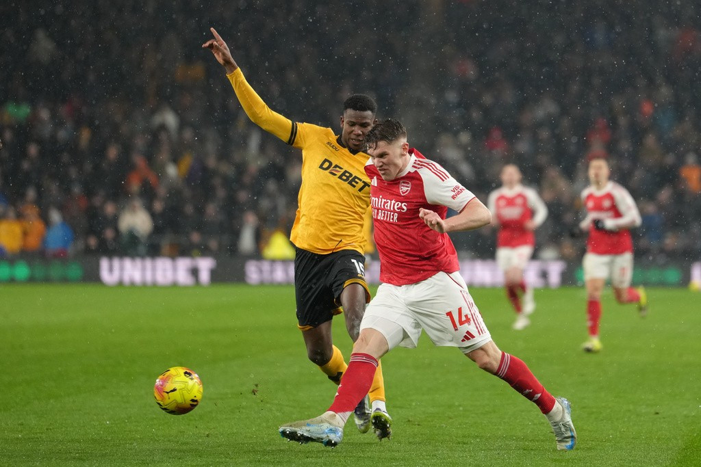 Trong những phút đầu hiệp hai, Arsenal liên tục thực hiện các pha phát bóng lên từ sân nhà. Hai trung vệ William Saliba, Gabriel và thủ môn Raya đều cố gắng đưa bóng thật nhanh hướng về 1/3 sân cuối cùng của Wolves. Các trung vệ của Wolves thắng mọi pha tranh chấp với Viktor Gyokeres. Khi tiền đạo này tỏ ra vô hại, các cầu thủ Wolves càng thêm tự tin để tấn công hàng phòng ngự của Arsenal với tốc độ cao. Sự tự tin đó được tiếp sức từ các khán đài cuồng nhiệt.