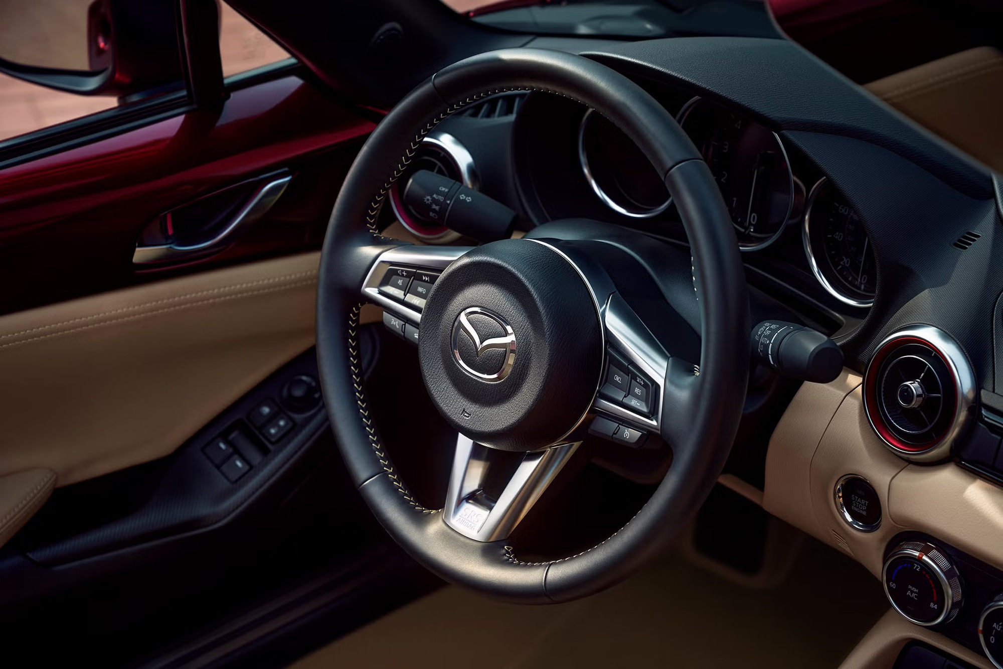 Đúng như dự đoán, Mazda MX-5 tại Việt Nam chỉ mở bán cấu hình mui trần bằng vải, màu nâu, đóng/mở hoàn toàn thủ công. Tại thị trường quốc tế, mẫu xe này còn có phiên bản mui trần dạng mui cứng (MX-5 RF).