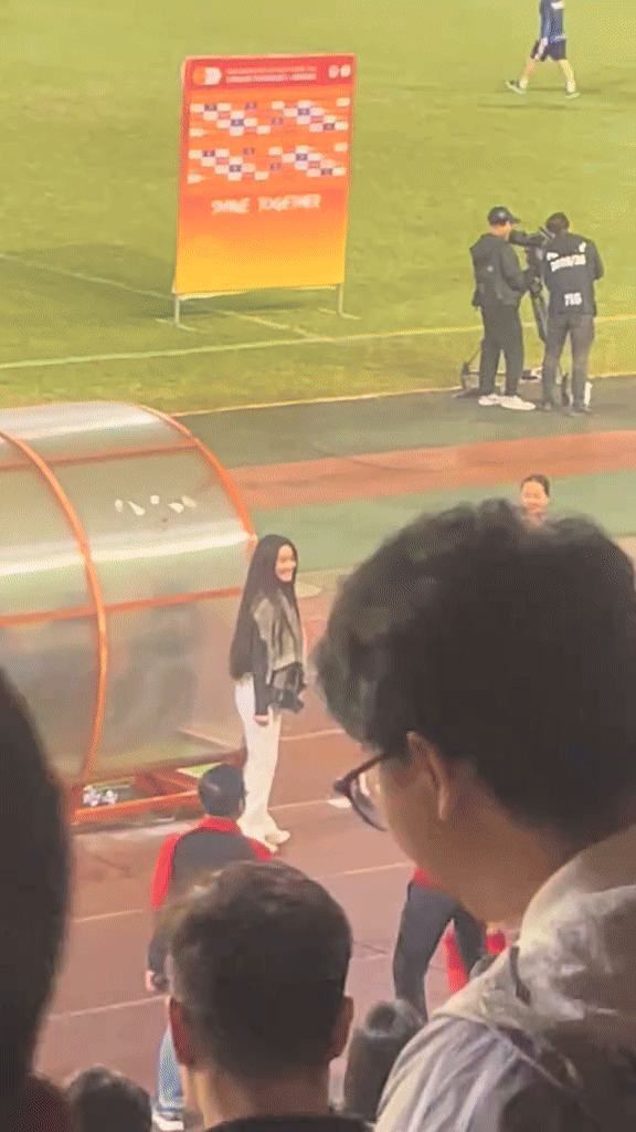 Ngay cả khi đã ngồi xuống, cô nàng vẫn liên tục dẫm chân, thu hút sự chú ý từ mọi người (Nguồn: @bongdavadoisong)
