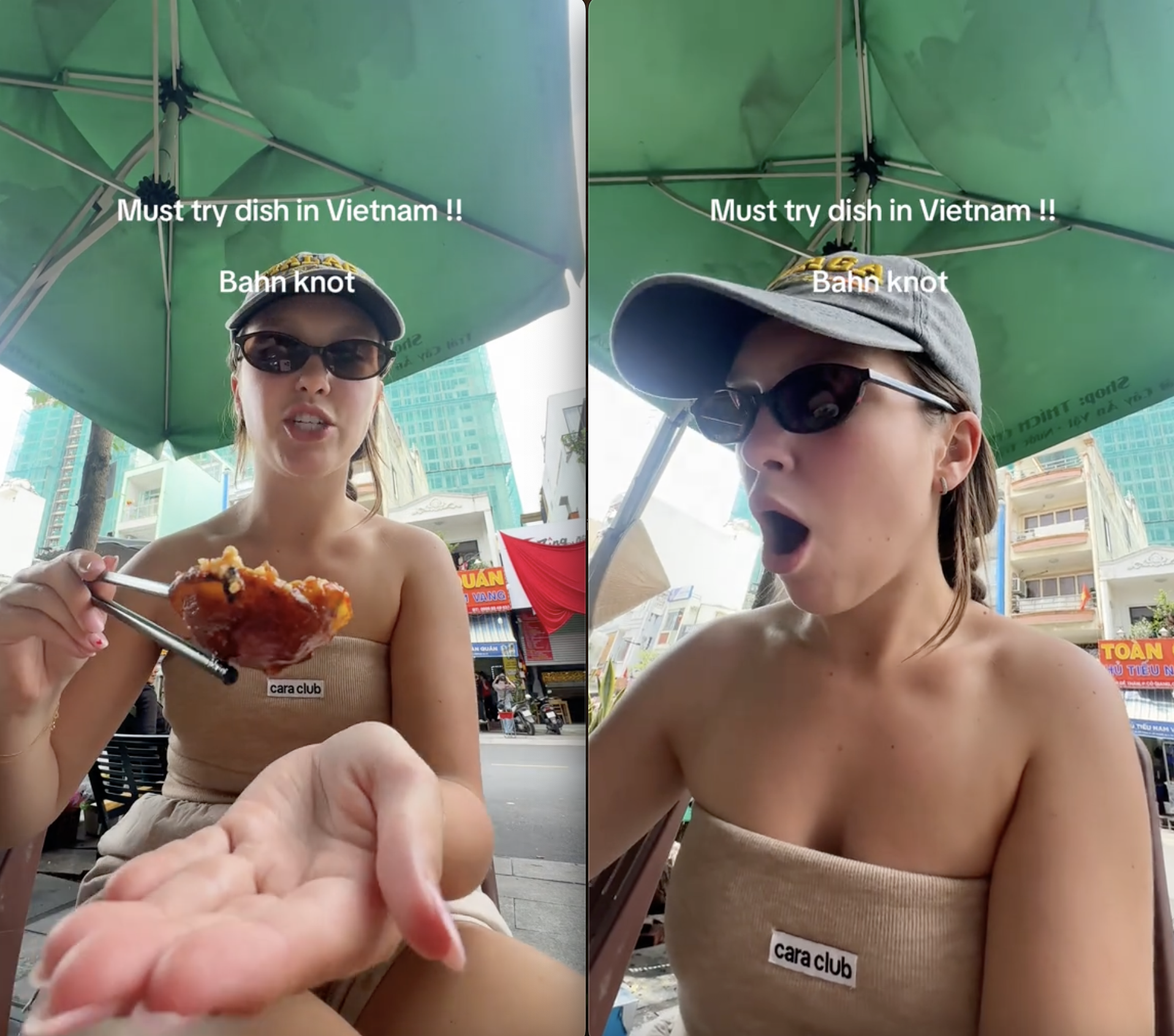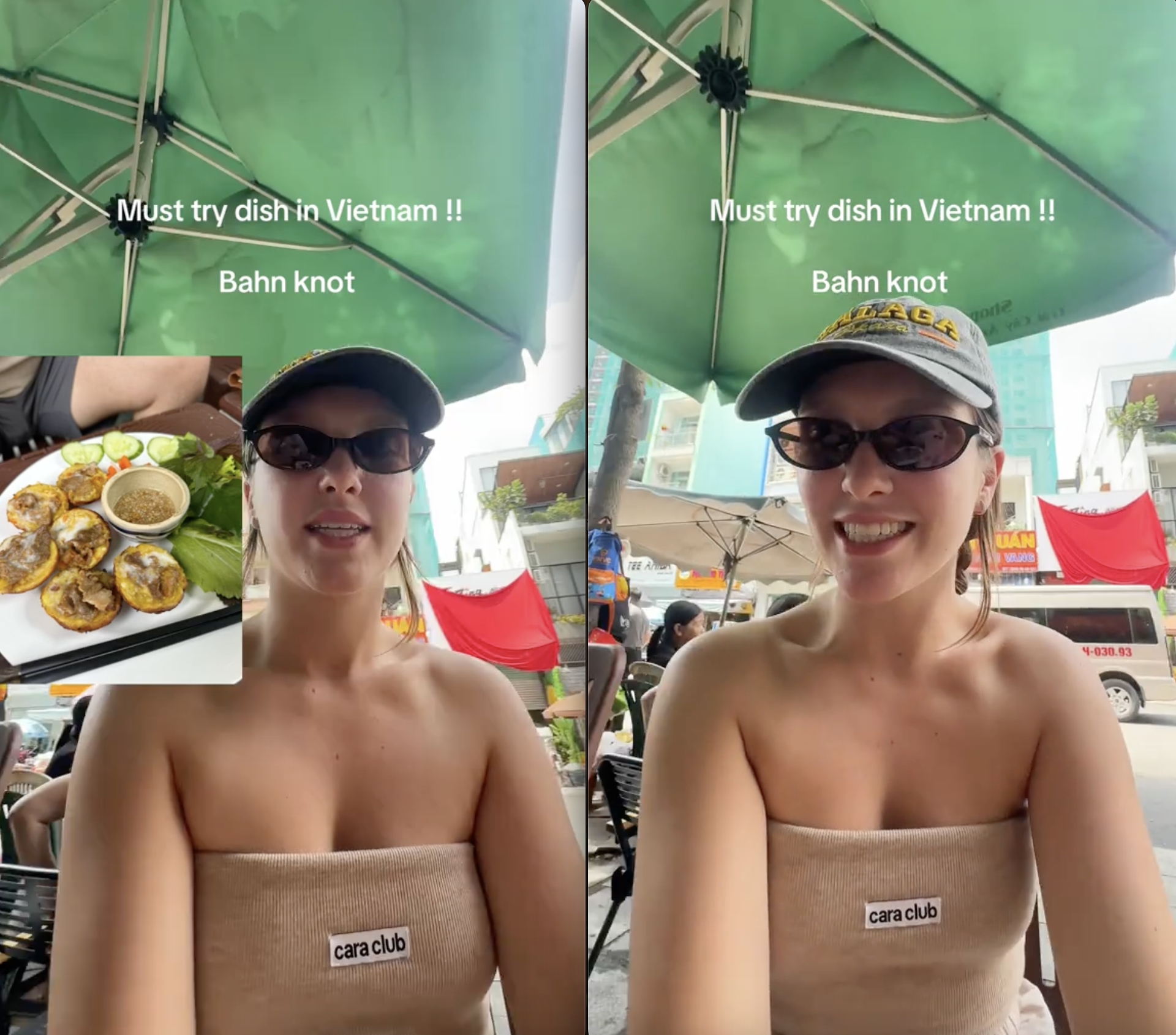 Trong video đang thu hút sự chú ý trên mạng xã hội, cô gái người nước ngoài xuất hiện trong một quán ăn nhỏ và giản dị, nơi cô gọi món bánh khọt - thứ bánh nhỏ xinh vàng ruộm, được nướng trên khuôn đất nóng hổi. Cô cho biết, mình đã từng ăn bánh khọt trong một chuyến du lịch Việt Nam trước đó và yêu thích đến mức khi quay lại, việc đầu tiên cô làm là tìm bằng được món bánh này.