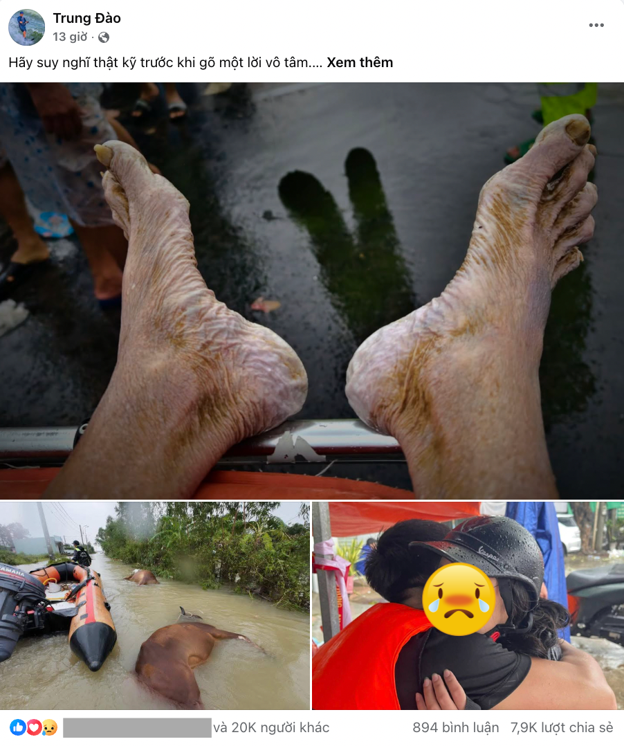 Cùng với đó, nhiều bài đăng xúc động của những người đã và đang thực hiện hoạt động cứu hộ, cứu trợ tại vùng lũ cũng được chia sẻ.