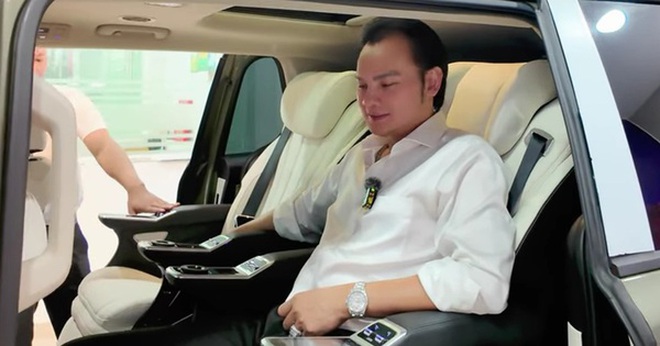 Nam nghệ sĩ còn vào xe review nội thất với sự hào hứng. Anh nói: "Trong xe của tôi còn có ghế massage đã thiết kế sẵn, tôi ngồi vào là được massage. Bước vào xe thơm ơi là thơm, đã ơi là đã!".
