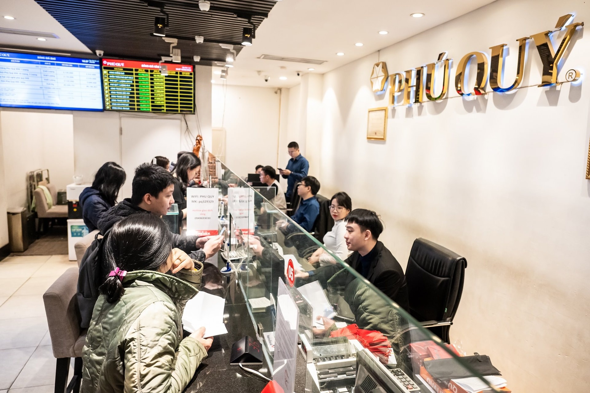 Nhiều khách hàng cho biết họ đã có mặt từ sáng sớm lấy số thứ tự, hy vọng mua được đúng loại vàng mình yêu thích. Mặc dù khá đông khách mua sắm, nhưng cửa hàng Phú Quý trên đường Cầu Giấy (Hà Nội) vẫn bố trí chỗ ngồi hợp lý, điều phối giao dịch để tránh tình trạng chen lấn, chờ đợi lâu.