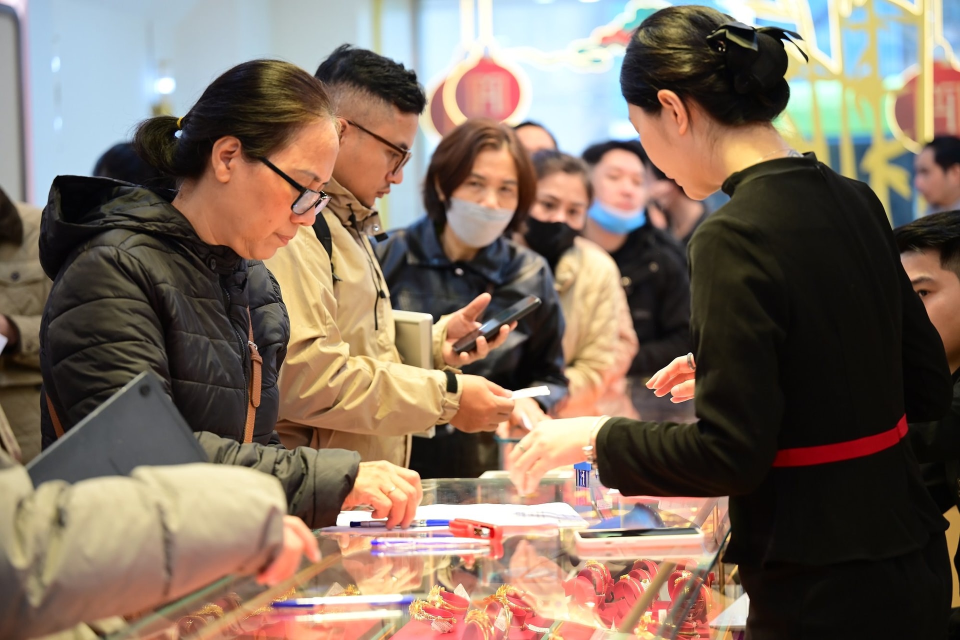 Những ngày cận Tết Nguyên đán Bính Ngọ 2026, thị trường vàng tại Hà Nội đang chứng kiến không khí giao dịch vô cùng sôi động. Tại các tuyến phố tập trung nhiều cửa hàng kim hoàn lớn như Trần Nhân Tông, Cầu Giấy hay Phan Đình Phùng, dòng người xếp hàng chờ đợi mua sắm đã trở thành hình ảnh quen thuộc.