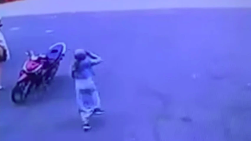 Hình ảnh người phụ nữ trên đường tẩu thoát.