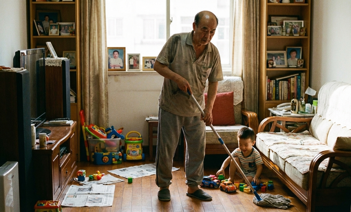 Ở tuổi 68, tôi vừa phải làm việc nhà hộ con, vừa phải chăm sóc cháu. (Ảnh minh họa: AI)