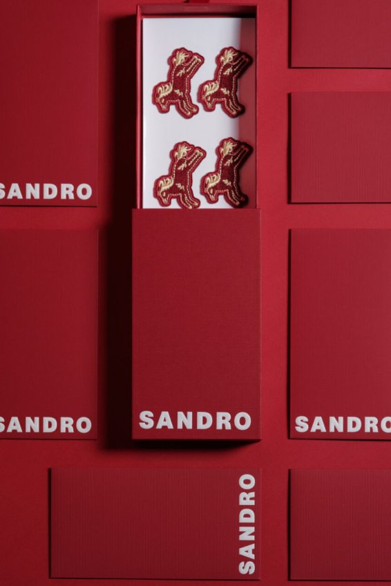 Tinh thần “Parisian chic” trong phiên bản Tết: tinh giản, trẻ trung và đầy nhịp điệu. Những chi tiết thêu mang hơi thở thủ công điểm xuyết trên nền đỏ, gợi lên nét tự do, lãng mạn rất riêng của Sandro.