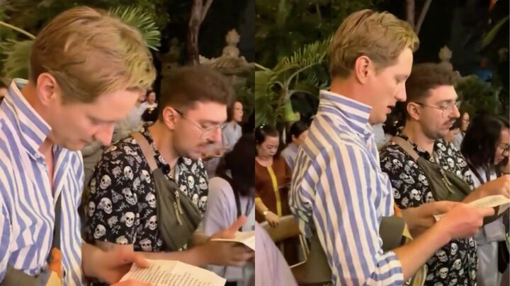 Clip hai du khách Tây tụng kinh làu làu, say mê đến nỗi không chú ý bất kỳ điều gì xung quanh, sau đó còn cúi đầu khấn vái khiến dân mạng ngạc nhiên và thích thú.