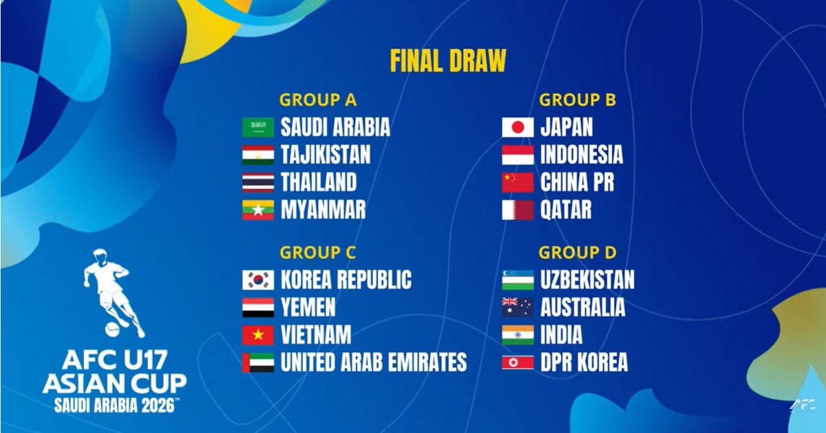 Theo bốc thăm giải U17 châu Á 2026, U17 Việt Nam nằm chung bảng với Hàn Quốc, UAE, Yemen. Đáng chú ý, hai đội đứng đầu mỗi bảng sẽ giành vé tham dự World Cup U17.