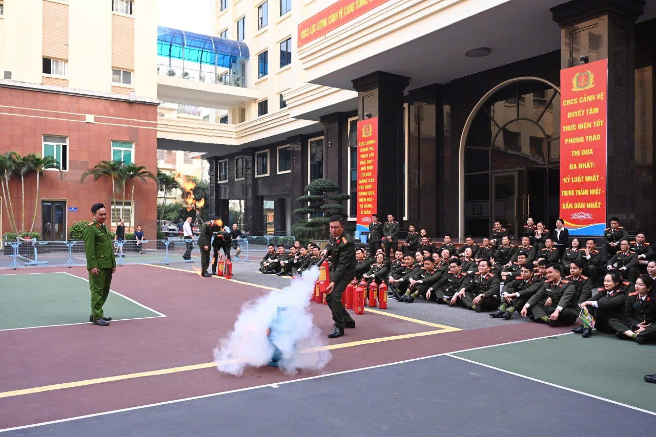 Ngay sau đó, các CBCS tham gia lớp tập huấn nghiệp vụ bảo vệ sự kiện đặc biệt quan trọng và khách quốc gia, thực hành các kỹ năng xử lý tình huống phòng cháy, chữa cháy và cứu nạn, cứu hộ.