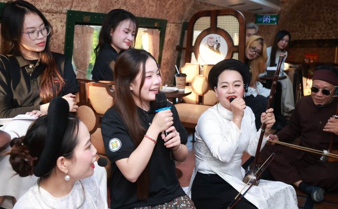 Các nghệ sĩ hát xẩm trên tàu.