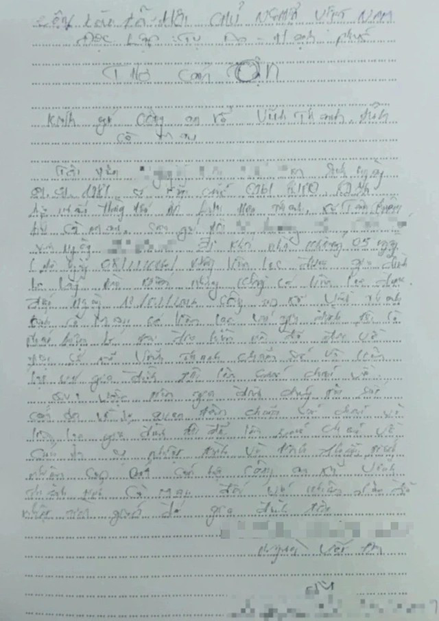 Người mẹ bày tỏ sự cảm ơn sâu sắc trước tinh thần trách nhiệm, sự hỗ trợ kịp thời của lực lượng Công an xã Vĩnh Thanh, nên viết thư cám ơn .