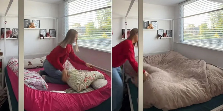 Theo các video lan truyền, “giường khoai tây” được tạo nên bằng cách sắp xếp lại ga trải giường, gối và chăn để cơ thể được bao quanh hoàn toàn. Bước đầu tiên, người thực hiện lật mặt tấm ga, sau đó nhét đầy gối và các lớp chăn dày xung quanh, tạo thành những “bức tường” mềm mại.