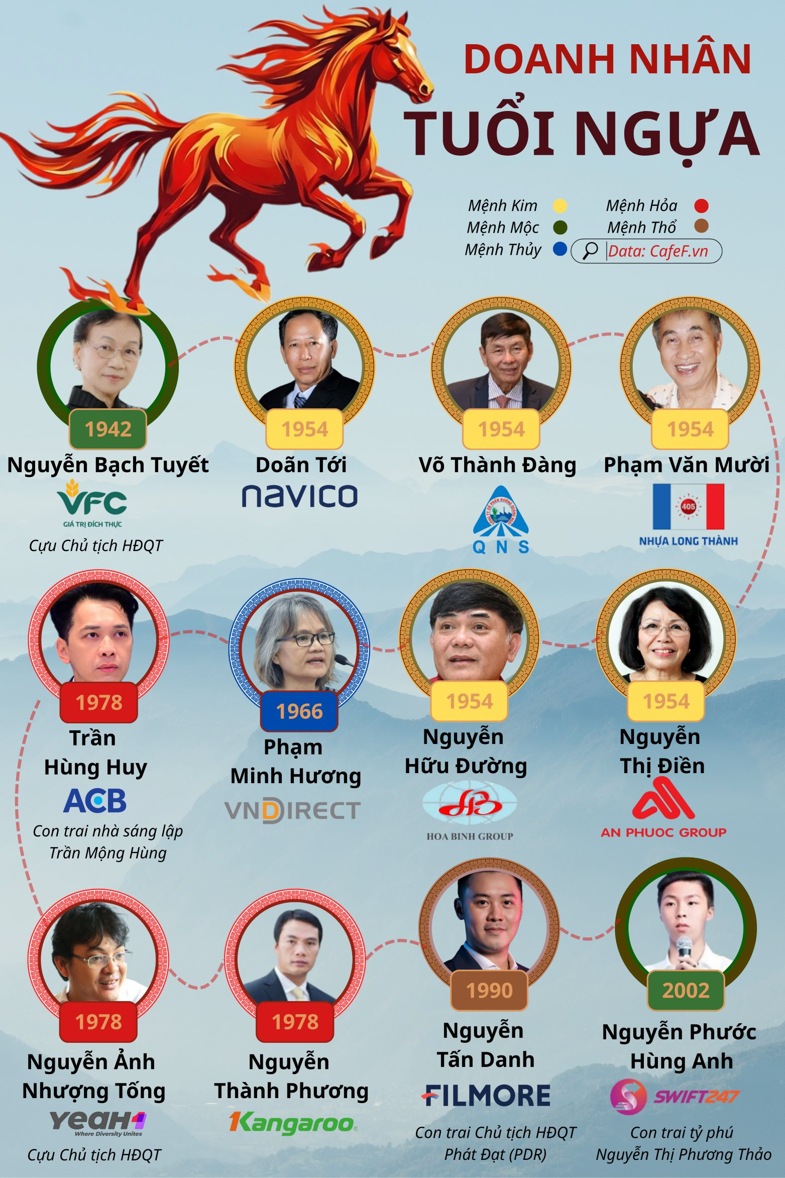 Trong quan niệm Á Đông, người tuổi Ngọ thường gắn liền với sự bền bỉ, tốc độ và khát vọng chinh phục. Trên bản đồ kinh tế Việt Nam, 12 gương mặt doanh nhân tuổi Ngọ dưới đây, từ những "lão tướng" dạn dày đến những "kỵ sĩ" Gen Z, đang chứng minh bản sắc của những “con ngựa chiến”.