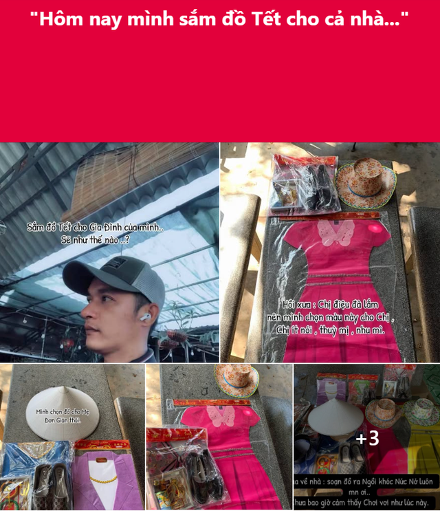 Người đàn ông ấy kể về việc sắm Tết cho gia đình. Một việc mà ai cũng nghĩ là ấm áp, là háo hức, là mùi của sum vầy. Anh chọn áo dài màu hồng cho chị gái vì "chị điệu đà". Anh chọn bộ đồ đơn giản cho mẹ vì "mẹ không cầu kỳ". Từng đôi dép, từng chiếc nón, từng món đồ nhỏ… đều được chọn bằng trí nhớ của yêu thương.