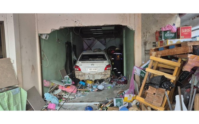 Chủ nhà, anh Wiroj, 44 tuổi, nói với cảnh sát rằng anh đang chuẩn bị lái xe đưa cô con gái 14 tuổi đến trường thì chiếc sedan lao qua cổng, đâm xuyên qua cửa trượt và va chạm với phòng tắm.