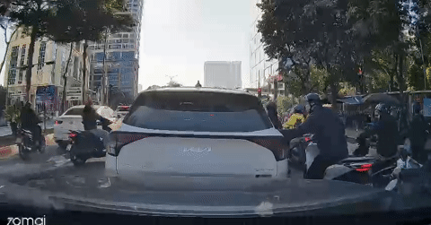 Chiếc KIA Spotage trôi lùi ở điểm dừng chờ đèn đỏ trên phố Phạm Văn Bạch (Hà Nội) dẫn tới va chạm vào đầu xe sau. Hậu quả, xe sau hỏng biển số và rada hệ thống ADAS. Tuy nhiên, chủ xe KIA lại bất hợp tác trong việc giải quyết hậu quả.